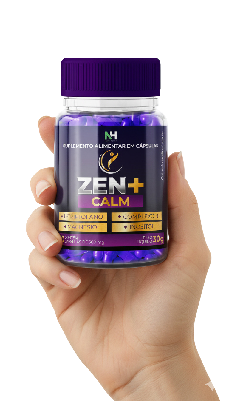 O Zen+ Calm não tenta apenas mascarar sintomas. Ele nutre seu sistema nervoso, reorganiza neurotransmissores e cria um estado de calma natural.
